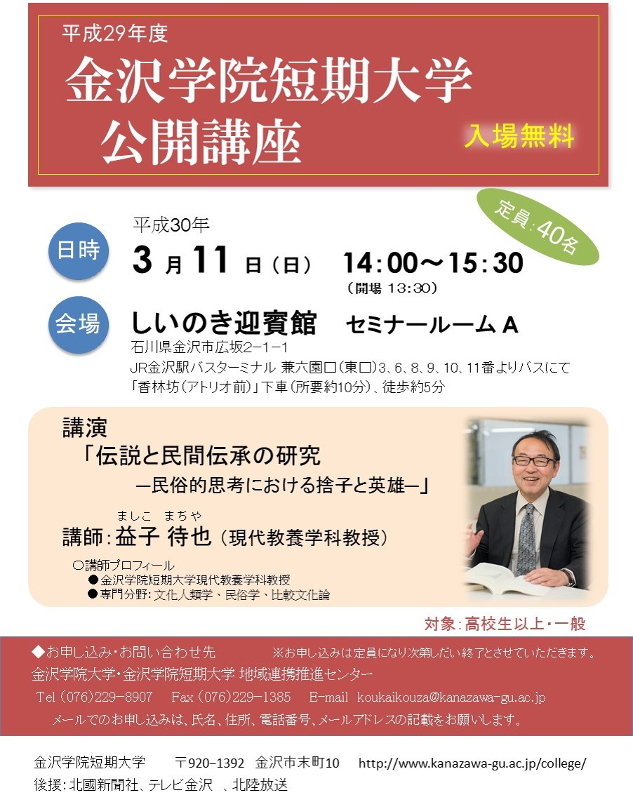 講座では、講座では、民俗学を専門とする現代教養学科の益子待也(ましこ・