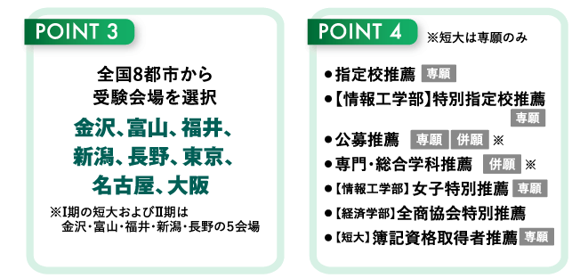 区分 出願期間<消印有効> 試験日 Ⅰ期 11月1日(土)~11月10日(月) 11月15日(土)・16日(日) Ⅱ期 11月17日(月)~12月8日(月) 12月13日(土)