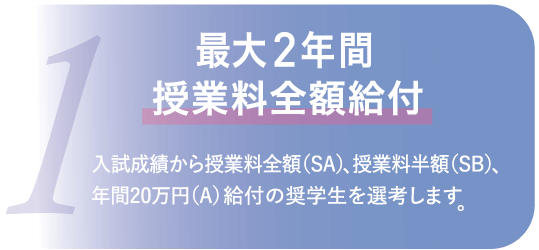 入試成績優秀者からランク別に奨学生を選考!