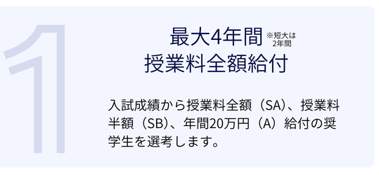入試成績優秀者からランク別に奨学生を選考!