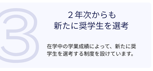 Check➌> 全日程で成績優秀者を対象とした給付型奨学金「KGスカラシップ制度」が適用されます。