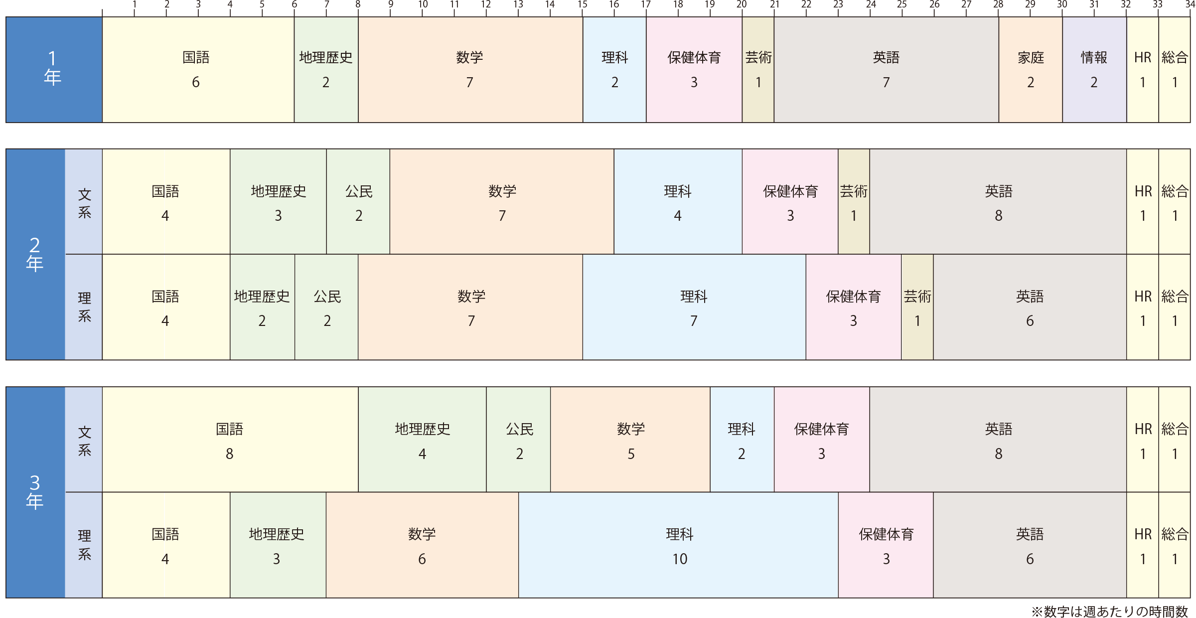 2021年度入学生カリキュラム(予定) 週34時間の授業