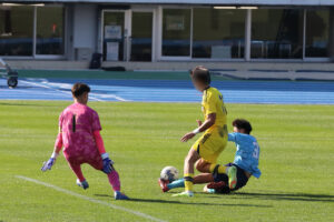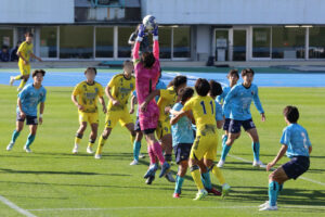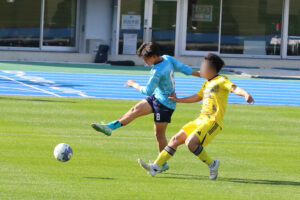 前半は互いに譲らず0-0で折り返しました。後半も拮抗した展開が続く中、54分に失点。その後は交代選手も含めて攻勢を強め、最後までゴールを目指して戦いましたが、あと一歩届かず試合終了となりました。