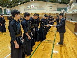 令和6年度石川県私立高等学校剣道大会 R6年4月13日(土)に白山郷公園体育館で開催された「石川県私立学校剣道大会」が開催されました。 結果は以下の通りです。 男子個人戦 3年生の部 優勝 1年生の部 優勝・準優勝 女子個人戦 1年生の部 3位(2名) 男子団体戦の部 Aチーム3位 Bチーム3位 女子団体戦の部 Aチーム3位 Bチーム3位 昨年を上回る結果を残すことができましたが、課題が残る内容でありました。 この大会で学んだ事を、稽古の中で課題として取り組み、次の石川県春季大会に向けて活かしていきたいと思います。