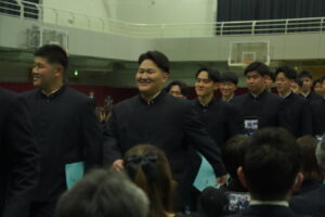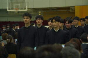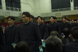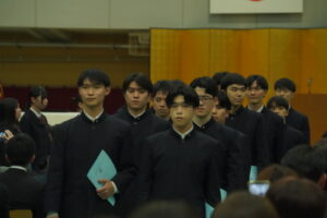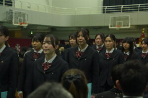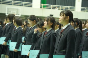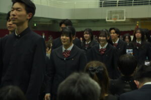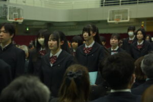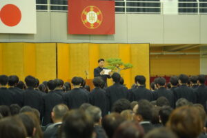 三年前、真新しい制服に身を包み入学式に臨んだ皆さんの姿が、昨日のことのように思い出されます。この三年間で大きく成長した皆さんが、それぞれの進路へと力強く歩み出す姿を、教職員一同誇りに思います。