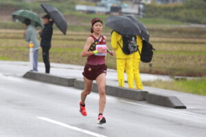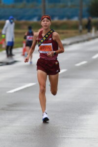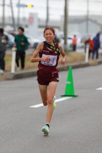 本校は1・2年生中心の若いチームながら、序盤から積極的な走りを見せました。1区の相浦依莉紗(1年)がトップと1秒差の2位でタスキをつなぐと、2区の梅澤明希(2年)が逆転してリードを奪取。続く3区の北出陽菜(1年)がその差を広げ、4区の大掛柚奈(1年)はこの区間だけで35秒のリードを築きました。