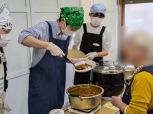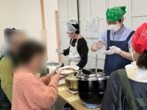 配膳の時に、地域の方とコミュニケーションをとりながら、美味しいカレーを提供しました。
