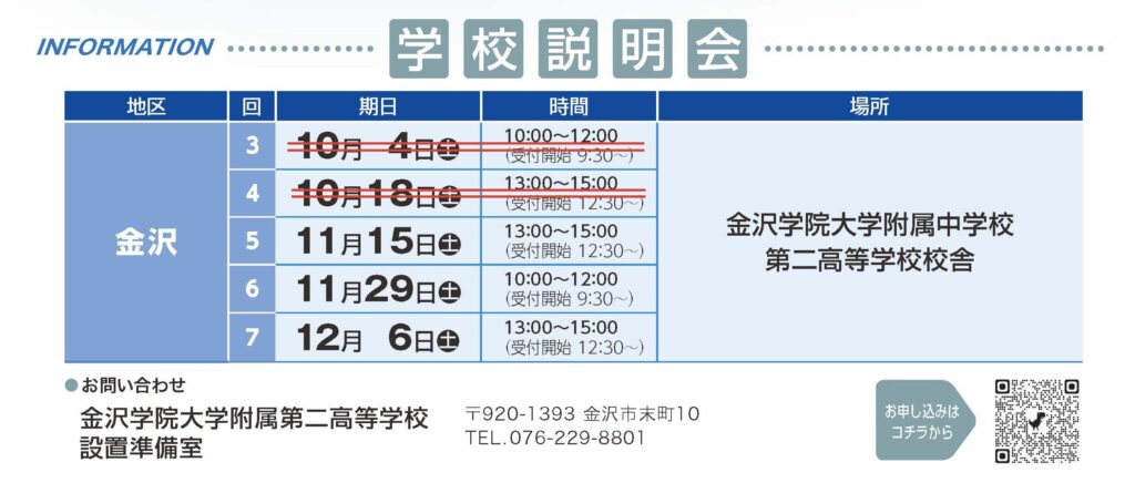内 容 チラシはこちら ⇒ 2026年度_金沢学院大学附属第二高校説明会(本校)チラシ