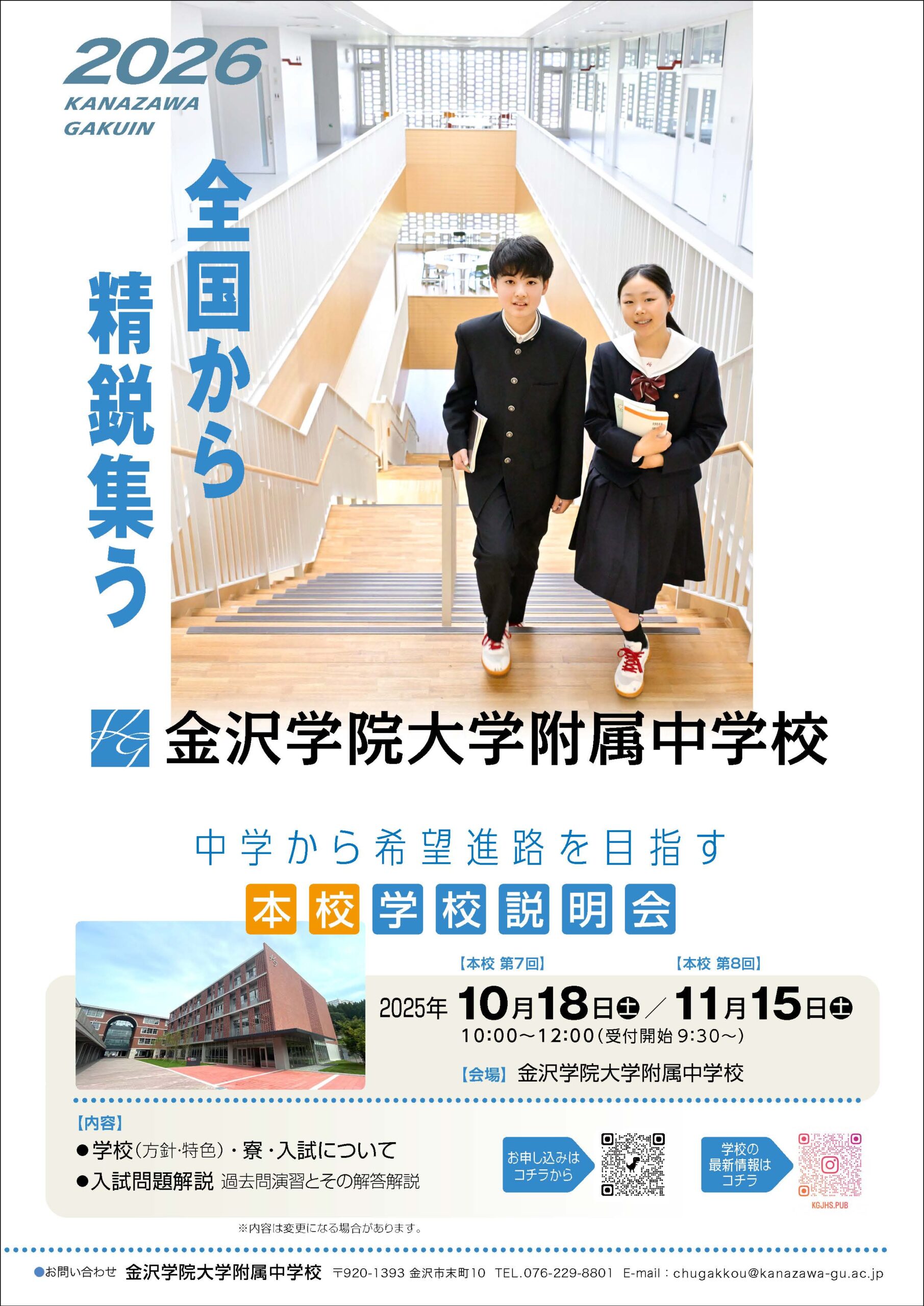 - 2025/08/26お知らせ金沢学院大学附属中学校の教員募集について