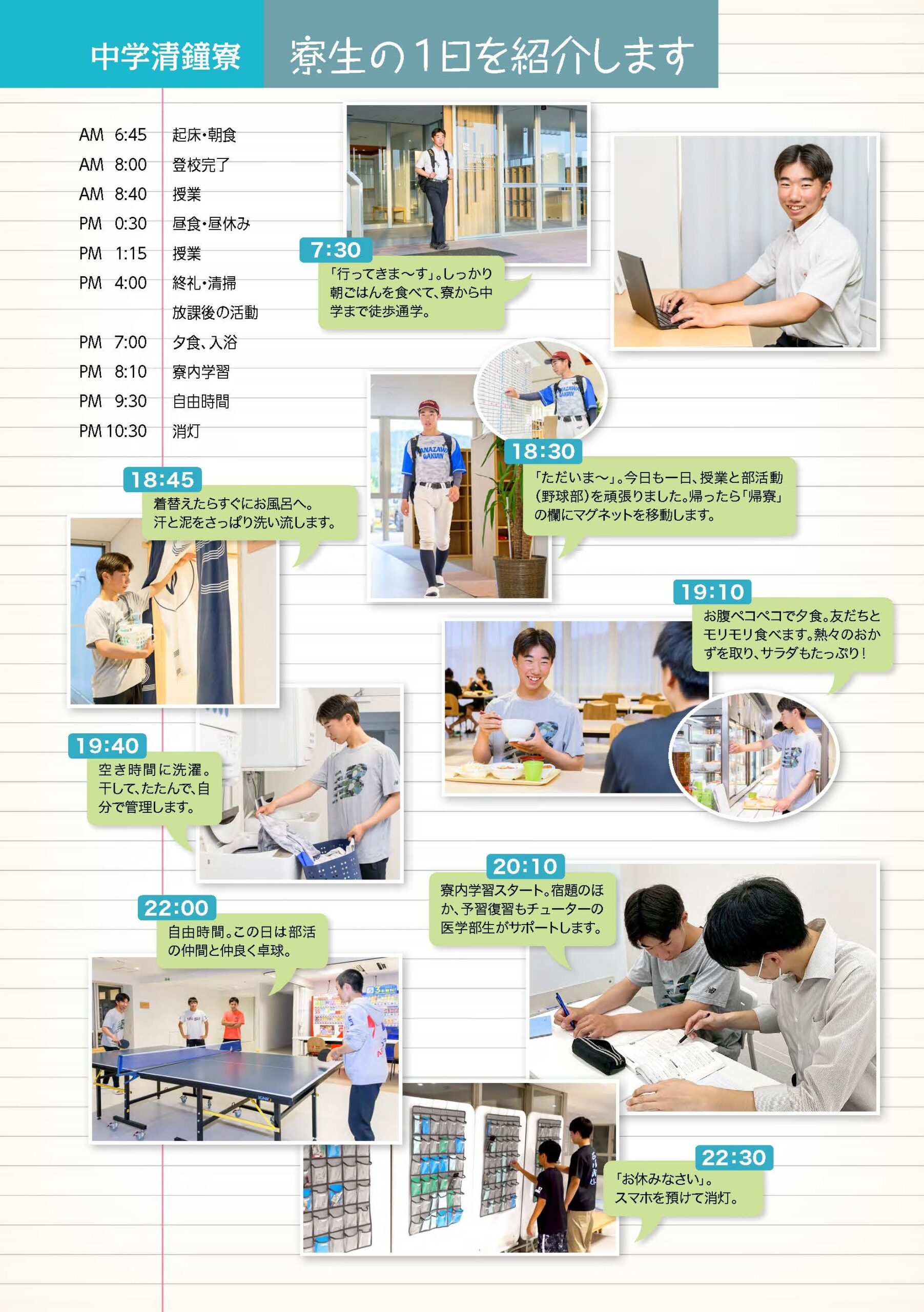 規則正しい生活のため、寮では日課表を定め、これに基づいて生活をします。