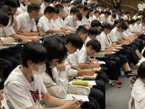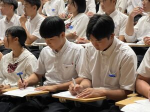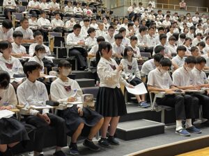 10月2日(木)の5時間目、KGタイム(総合的な学習の時間)において、全校生徒を対象に福井経編興業株式会社 代表取締役社長・髙木義秀氏による講演会を開催しました。