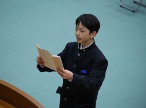 新入生による力強い宣誓が行われ、英語によるメッセージも披露されました。