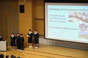 発表では、原稿の英文を覚えるだけでなく、聞いている人に分かりやすく伝わるよう工夫しながら発表していました。学校だけでなく家庭でも繰り返し練習を重ねてきた成果が表れ、堂々とした姿が印象的でした。 発表者は、「とても緊張しましたが、たくさん練習してきたので、言葉がすらすらと出てきました。」と達成感を語ってくれました。 今回のフィールドワークや発表会を通して、自ら課題を見つけ、考え、行動する力が大きく育まれました。この経験を今後の学習や学校生活につなげ、さらに視野を広げていくことを期待しています。