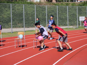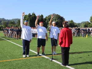 定番の「台風の目」に加え、サイコロの出目によって走る距離が変わる「二人三脚」や「借り物競争」など、生徒会執行部が工夫を凝らしたユニークな競技が次々と展開されました。最終種目の団対抗リレーでは、各団の代表が全力でバトンをつなぎ、会場は大きな歓声に包まれました。