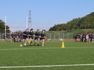 雨天により一度は順延となりましたが、当日も朝方まで降雨が残り開催が危ぶまれました。しかし、生徒会執行部をはじめ、生徒たちの「絶対にやるんだ!」という熱意が届いたのか、開始時刻には晴天が広がりました。