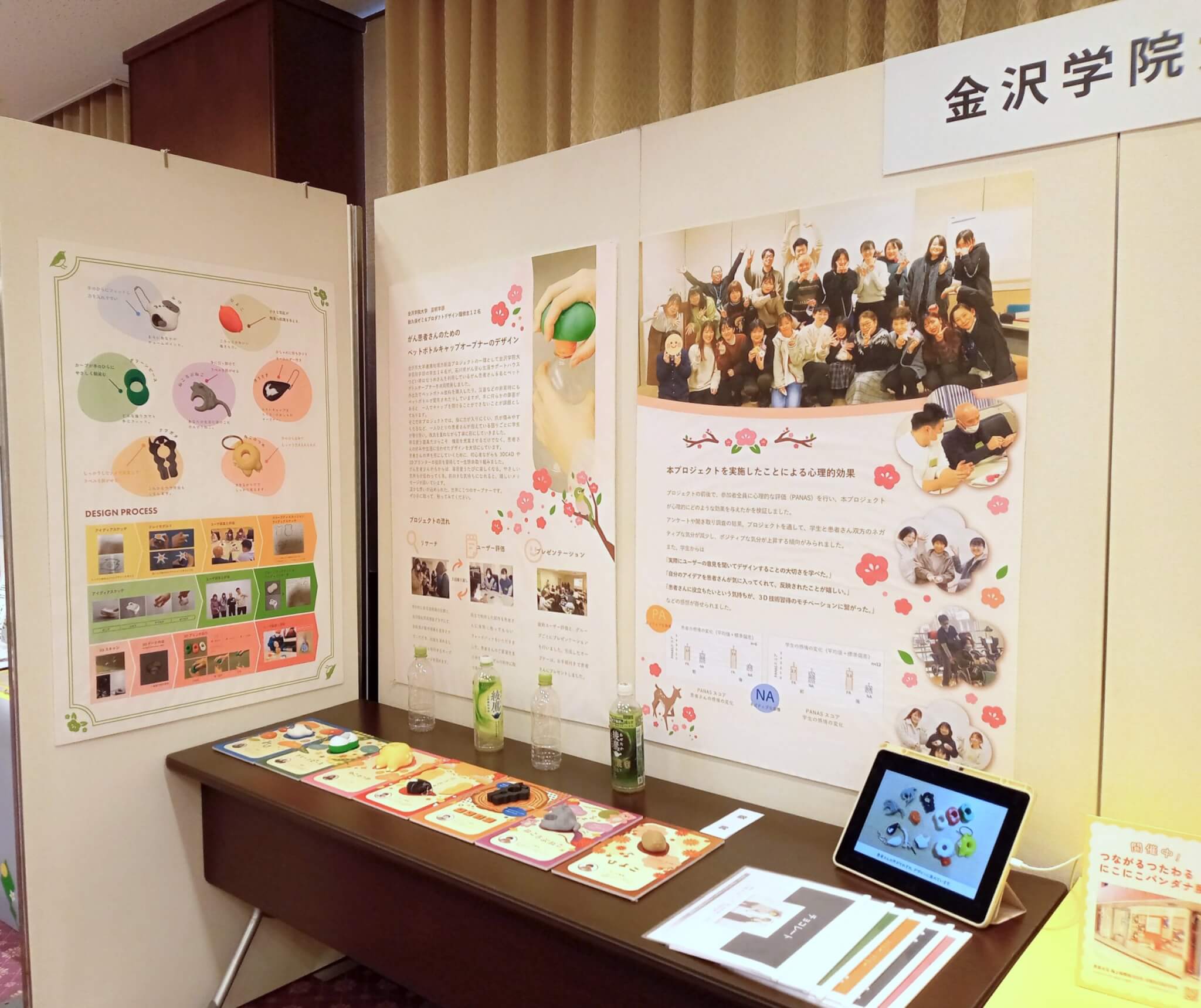 石川県デザイン展開催委員会主催の第52回石川県デザイン展 学生部門で、金沢学院大学芸術学部の餘久保優子教授のゼミ・プロダクトデザイン履修生12名による作品『がん患者さんのためのペットボトルオープナー』が銀賞を受賞しました。この作品は金沢市との大学連携地域力創造プロジェクトの一貫で作成されており、「石川県がん安心生活サポートハウス つどい場はなうめ」に通所しているがん患者の方6名と共同開発したものです。