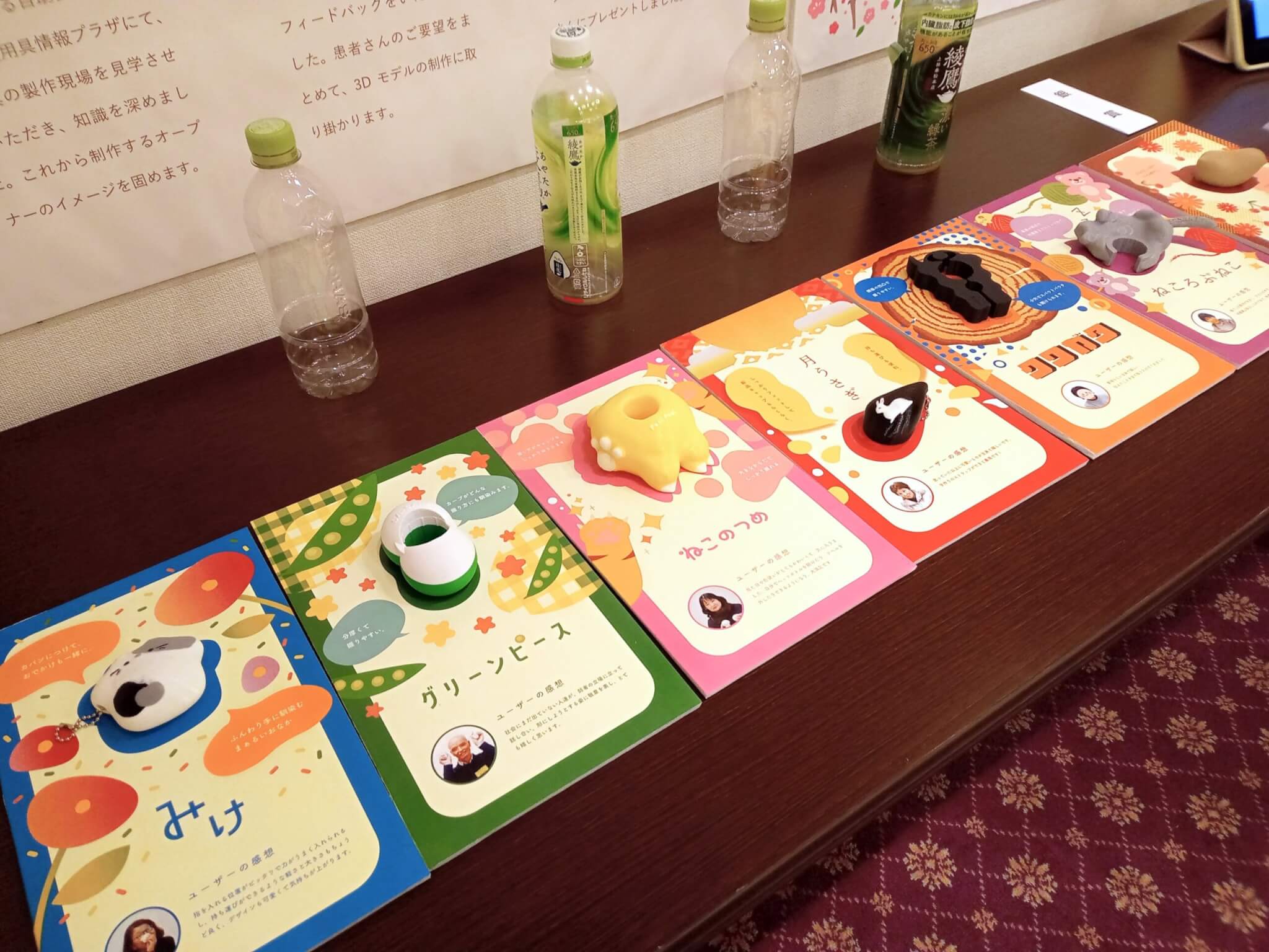 学生たちは患者の皆さんから「指に力が入りにくい」「爪が傷みやすい」などそれぞれの困りごとを聞き取り、改良を重ねていきました。毎日使うものだからこそ、機能性だけでなく、好みや生活スタイルに合わせてデザインするよう心掛け、3DCADや3Dプリンターの技術を習得し、作品を完成させました。