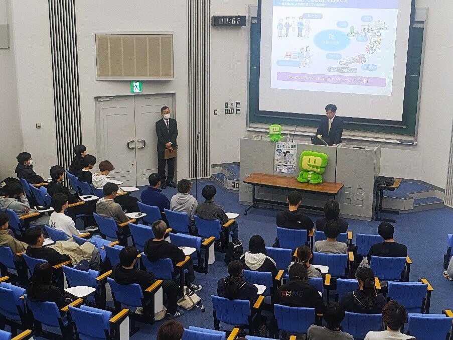 経済学部の先輩には国税専門官として採用され活躍されている方もいます。今日の講義をきっかけに、学生たちには税制や税にかかわる仕事について理解を深め、より一層関心を高めていってほしいと思います。