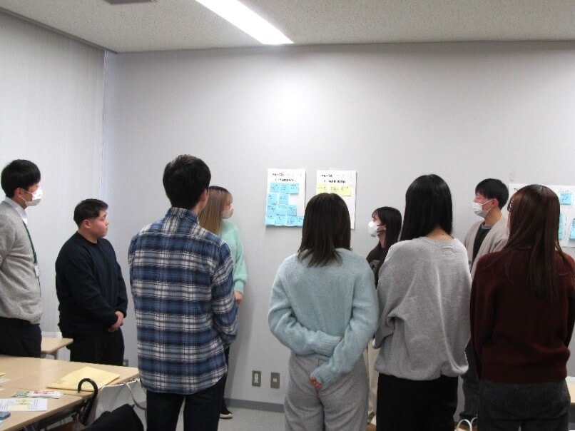 学生たちは皆、多かれ少なかれ新社会人となることの不安を抱えているようでしたが、意見交換を通して、自分たちなりの解決策にたどり着くことができたようです。最後には、ハローワーク、石川労働局の皆様より、温かく前向きなエールをいただきました。このような機会を得ることで、参加した学生は働くことの不安が和らいだように思います。
