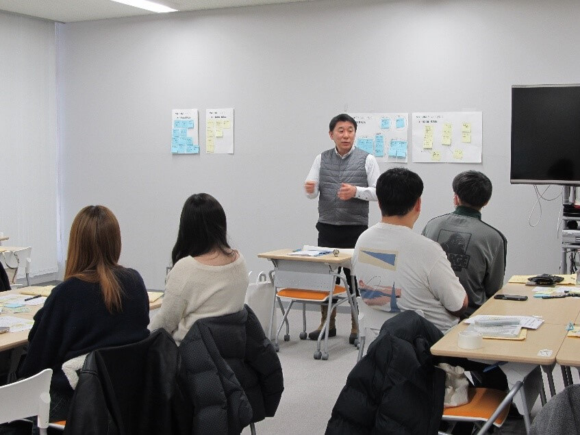 セミナーでは、3つのグループに分かれ、ハローワークの講師の方々にサポートをいただきながら、新社会人としての楽しみや不安に思うことについて、意見を交換しました。そして、各グループで話し合った内容をまとめて発表し、情報共有を行いました。