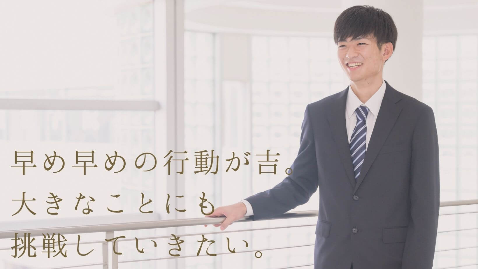 何事も早めの準備・行動が大切です。結果的にそれが自分の心の余裕と自信につながり、面接本番での姿に出ると思います。後悔したくないのであれば、恥ずかしがらずに自分から行動を起こしていくことが大切です。これから就活を始められる人は、まずは就職支援部を頼るのも良いと思います。積極的に分からない事や聞きたいことを聞いて情報収集をして、いい意味で使える物はフルに使って自分が有利になれるように動いてみてください。就活は本当に早い者勝ち。早め早めの行動が必ず周りと差をつけ優位になれると思います。