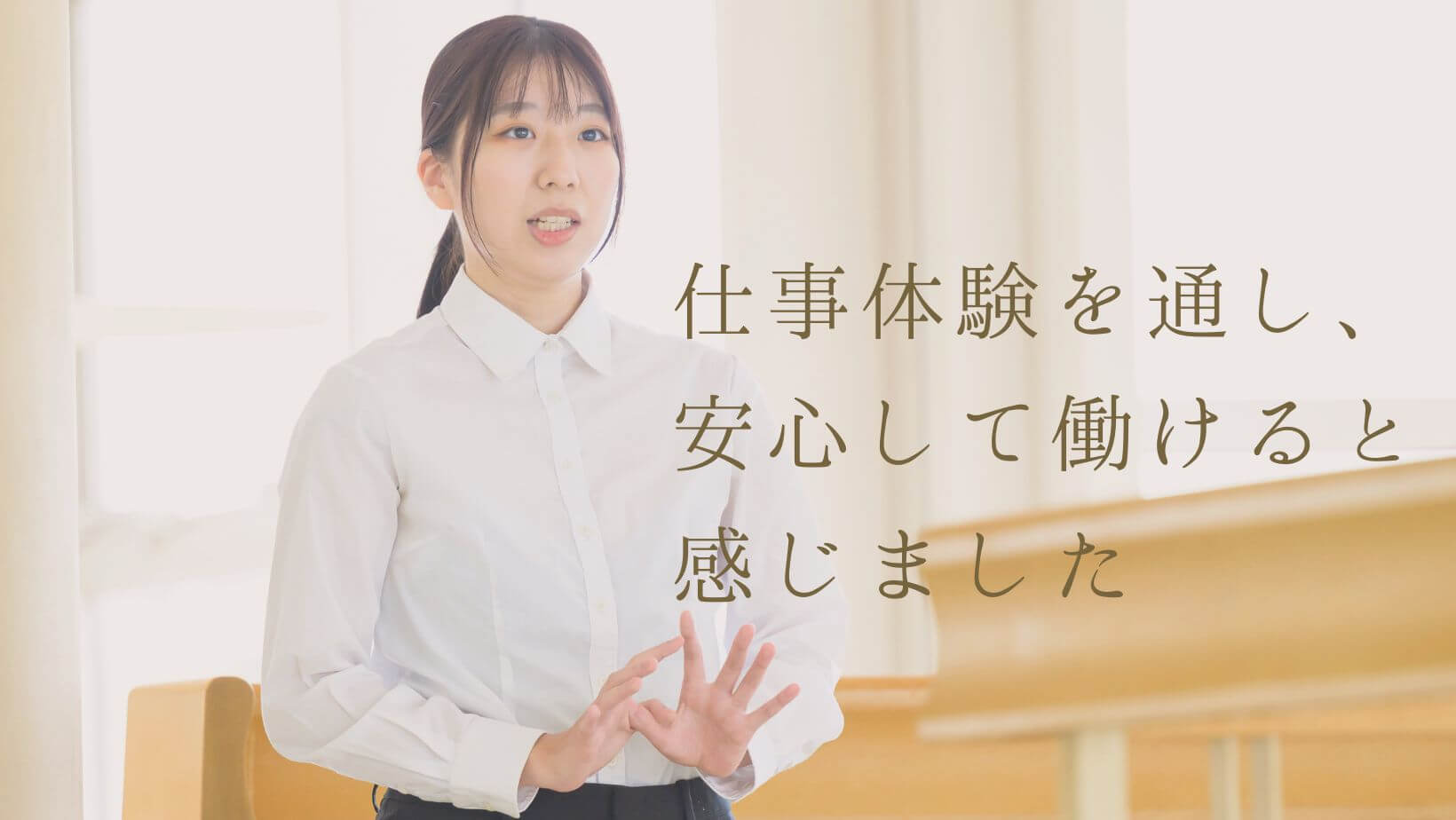 合同説明会の参加予定企業のリストを見ていた際、家族からもこの会社を勧められ、私自身幅広く業界を見てみたかったのでお話を聞きに行きました。最初は福利厚生がしっかりしているところに魅力を感じましたが、後日1Day仕事体験に参加すると、社内の明るい雰囲気、真摯にアドバイスをしてくださる社員の方々の人柄にひかれ、安心して働ける会社だと感じ志望先にしました。