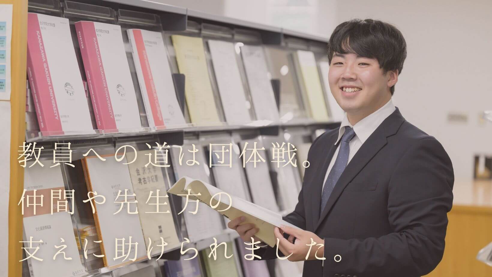 高校2年生の担任との出会いがきっかけで、わかる・できる授業の面白さに気付き、何よりも学ぶこと自体が楽しいと思えるようになりました。私も教師になって面白い授業を行い、学ぶことの楽しさを子どもたちに伝えたいと思い、地元での採用試験合格を目指しました。