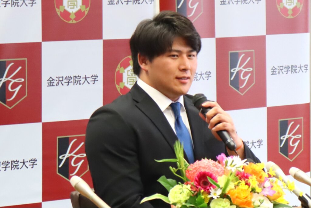 金沢学院大学相撲部からの角界入りは炎鵬関(伊勢ケ浜部屋)らに続き、4人目となります。