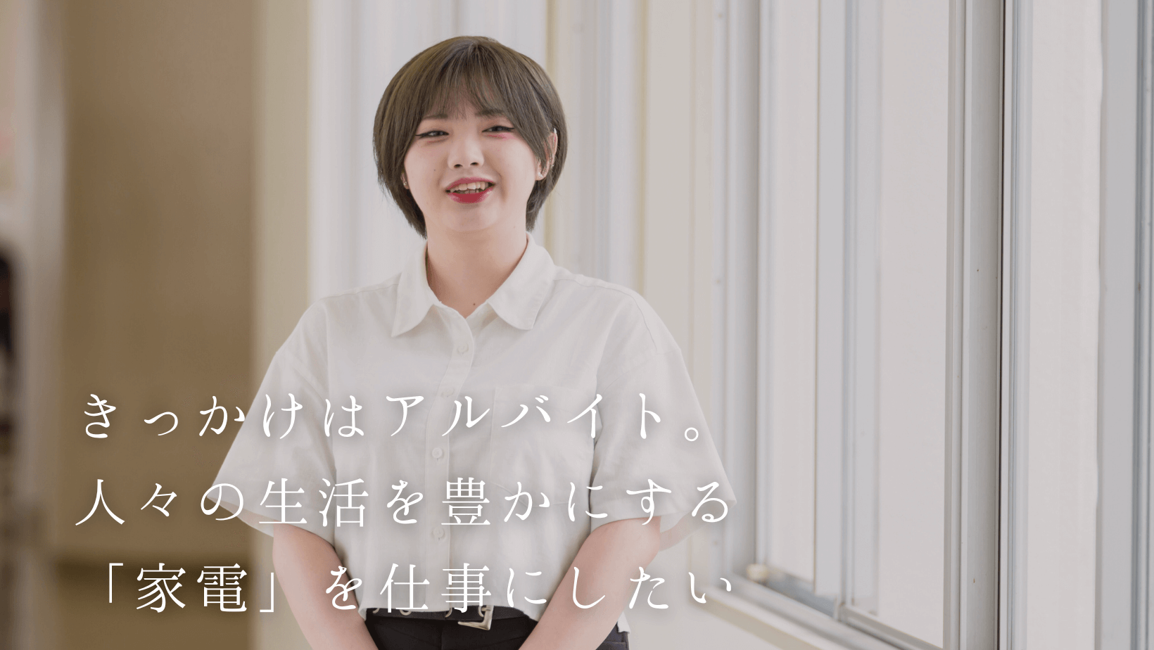 私は大学2年の時から家電量販店でアルバイトを始めました。当初はレジ接客の担当をしていましたが、できることを増やしたいと思い、自分でプリンターインクや電球のことも勉強して担当できる幅を広げました。お客様に商品の提案をできるようになると、私の提案や説明で、その家電の機能に感動してもらえたり、いいものに出合えたと喜びの声をいただいたりという経験ができました。