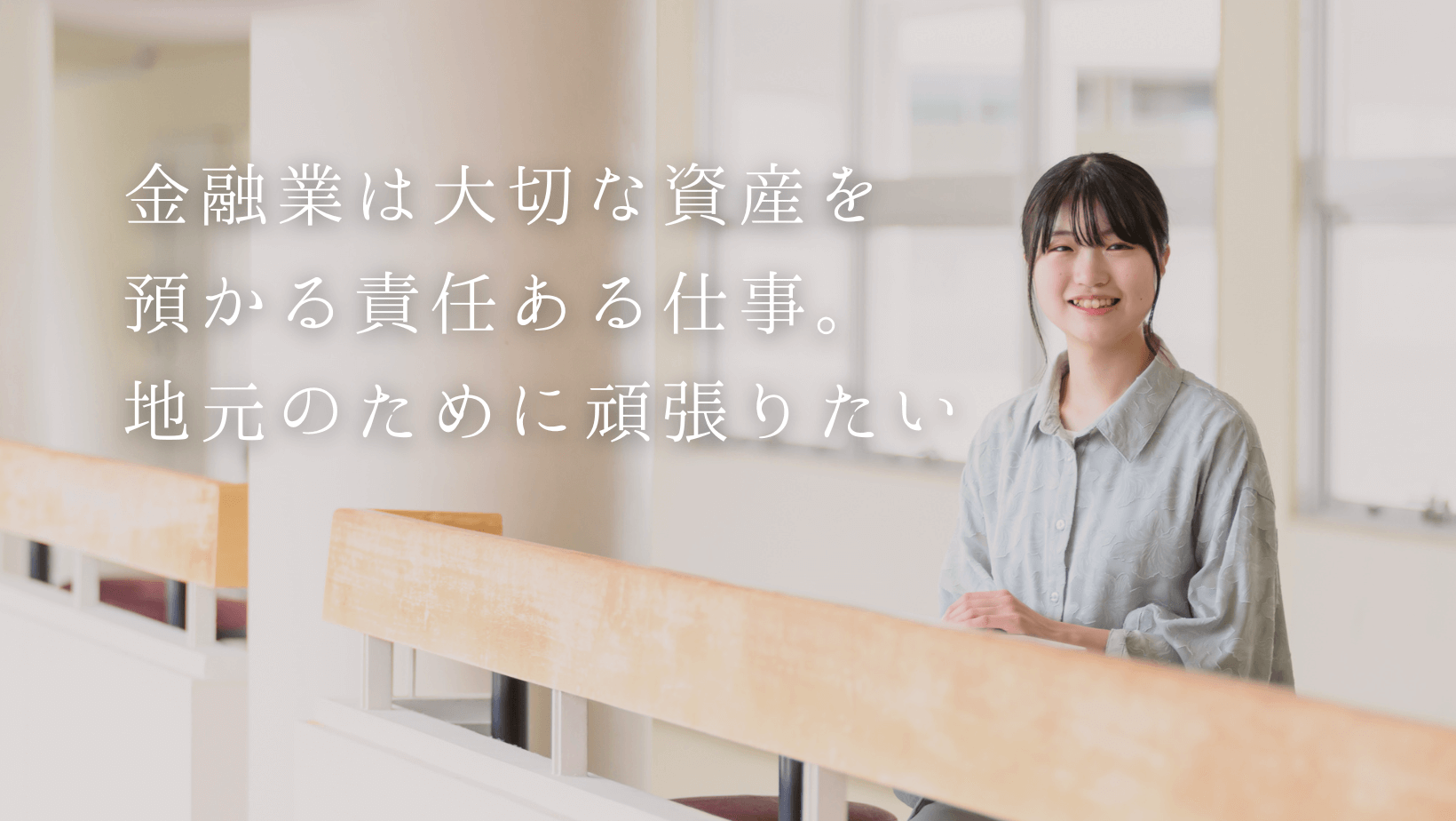 私は地元・富山県で就職を考えており、富山で開催された合同企業説明会に参加しました。そこで「北陸銀行」の話を詳しく伺い、地元に貢献できること、地域に密着し、地域活性化のために仕事ができることにひかれ、採用試験を受けることにしました。